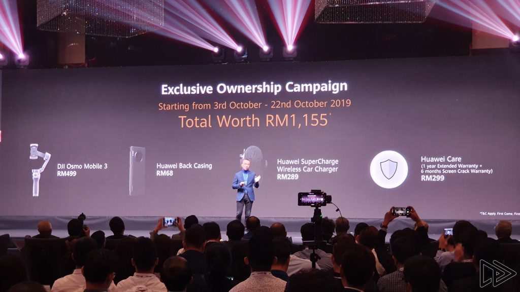 You’ll have to jump through a few hoops to secure a unit of the Mate 30 Pro, but those who managed to pre-order the device will get quite a number of freebies. These include a DJI Osmo Mobile 3, a Huawei in-car charger, a PU casing, as well as Huawei Care – it offers one-year extended warranty and six-month screen crack warranty. Collectively, all of these are worth RM1,155.