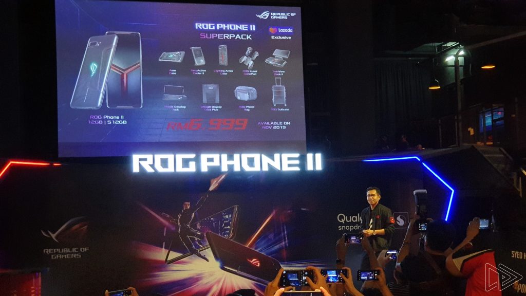 Alternatively, there’s also a “Super Pack” of the ROG Phone II, which offers a number of accessories along with the 512GB variant of the phone. These include the ROG Kunai Gamepad, Asus TwinView Dock II, two different casings, and even a ROG-branded luggage bag. This bundle pack will be available sometime next month in November (exclusively on Lazada) for a cool RM6,999.