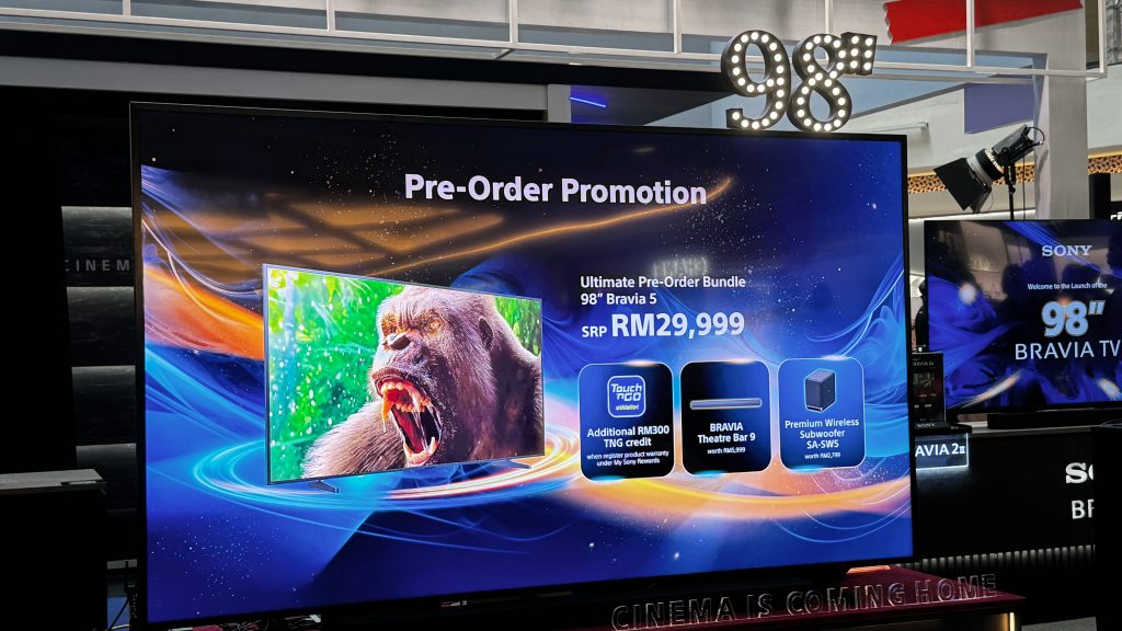 The largest BRAVIA 5 at 98-inch retails for RM29,999 and is now available for pre-order. Those that pre-order before 6 July will receive RM300 Touch n’ GO credit, a BRAVIA Theatre Bar 9 soundbar, along with the Sony SA-SW5 Wireless Subwoofer.