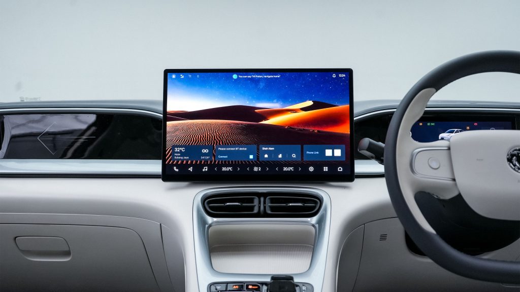 Inside, the e.MAS 5 gets an 8.8-inch digital instrument display and a 14.4-inch infotainment screen with FHD resolution. The infotainment runs Proton’s Atlas operating system, complete with Apple CarPlay, Android Auto, an integrated Charging Map, and voice command support in Bahasa Malaysia, which was first introduced in the all-new Proton X50 launched last month.