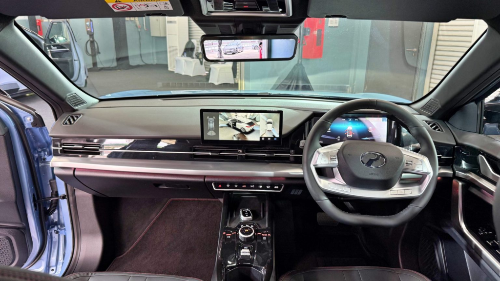 Inside the cabin, the QV-E features a 10.25-inch display head unit and a digital rear-view mirror, enhancing visibility and control. Connectivity is streamlined with a wireless phone charger, and the system offers full support for wireless Apple CarPlay and Android Auto.