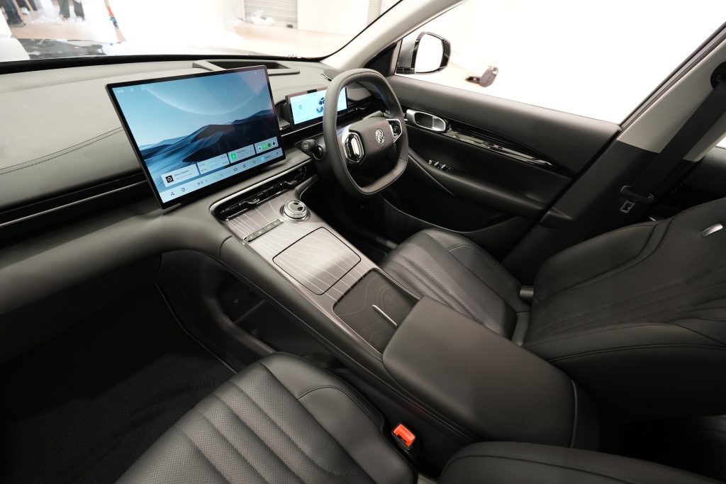 Visually, the e.MAS 7 PHEV stays closely aligned with the e.MAS 7 EV, though there are subtle differences. The PHEV is marginally larger overall and gains a model-specific split headlight design, while higher-end variants feature a full-width front light bar. Around the back, unique taillight signatures, revised bumpers, and a tailgate-mounted number plate help distinguish it from its fully electric sibling.