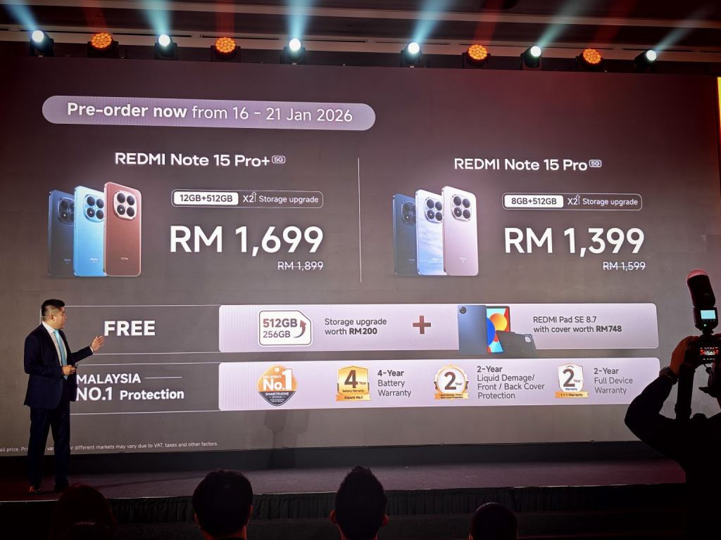 Meanwhile, the REDMI Note 15 Pro+ 5G retails at RM1,699 for the 12GB + 256GB model, likewise bundled with a free upgrade to 512GB of storage. Early buyers will also get a REDMI Pad SE 8.7-inch with cover at no additional cost.