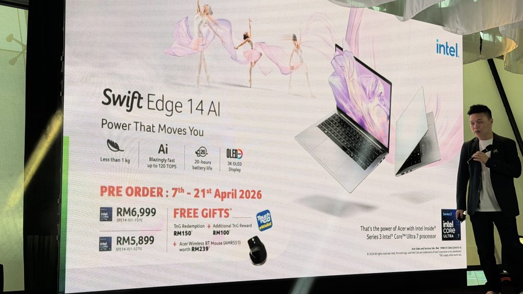 The Swift Edge 14 AI starts at RM5,899 and is currently on pre-order until 27 April 2026. The Swift Go 16 AI retails at RM6,999 and is available immediately at authorised Acer resellers and the Acer eStore.
