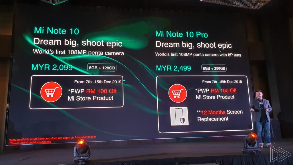 The Xiaomi Mi Note 10 series will be available for purchase in Malaysia from 7 December onwards. The standard Mi Note 10 retails at RM2,099, while the Mi Note 10 Pro goes for RM2,499. Early birds will get some nice freebies too: those who place their order between 7 to 15 December will get a RM100 PWP discount on a Mi store product. For the Pro model, you’ll also get a 12-month screen replacement warranty.